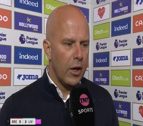 英超第9轮,利物浦客场2-3不敌布伦特福德,赛后,红军主帅斯洛特接受了TNT体育的采访。