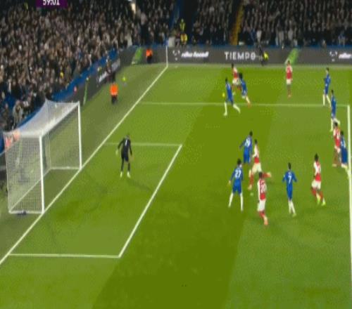 第45分钟,赖斯带球从容突破,禁区前沿倒三角回敲,马丁内利跟上打门,桑切斯飞身将球扑出,切尔西逃过一劫。